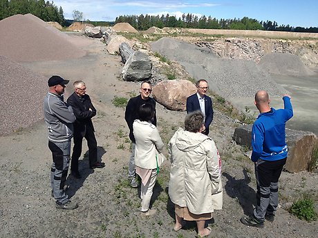 Förstora bildenKommunledningen blickar ut över den bergtäkt där Grävtjänst fram till 2026 har tillstånd att bryta 2,5 miljoner ton grus. Klicka på bilden för att förstora.