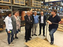Förstora bildenSusanne Andersson, Åsa Karlsson, Åke Fransson, Anders Månsson, Lars Waldefeldt och Jerker Andersson-Liljestrand på fabriksvisning med Lindabs platschef Pontus Pehrsson
