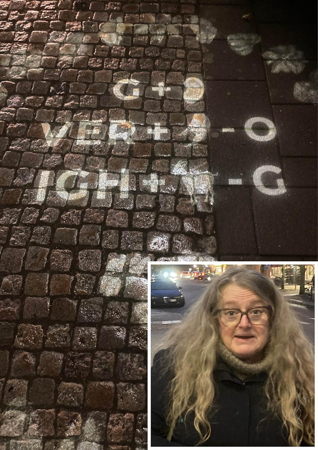 Konstnären Helena Larsdotter från Hällekis/Kinnekulle har i samband med projektet ”Drömmen om Götene” tagit fram nya schabloner för effektbelysningen på Järnvägsgatan i Götene.