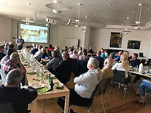 Thunholm pratade inspirerande om företagets satsningar på anläggningen i Götene, hur arbetet med att lyfta in den nya spraytorken fortskrider och planerna på etableringen på Kinamarknaden. Han uppmanade även publiken av att använda sig av det faktum att vi verkar i ett områden med höga natur- och kulturvärden. Hållbarhet blir mer och mer intressant för alla delar i värdekedjan och vårt biosfärsområde kan användas som ett bra marknadsföringsargument.