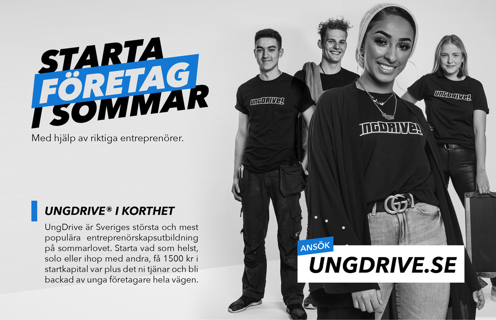 Är du ung och intresserad av att starta eget företag? Götene kommun samarbetar med Ung Drive som hjälper ungdomar att start sina egna sommarföretag. I Ung Drive får du som är 15-18 år hjälp att starta ett eget företag och tjäna egna pengar under sommarlovet. På vägen lär du dig om att driva företag och testa hur det är.