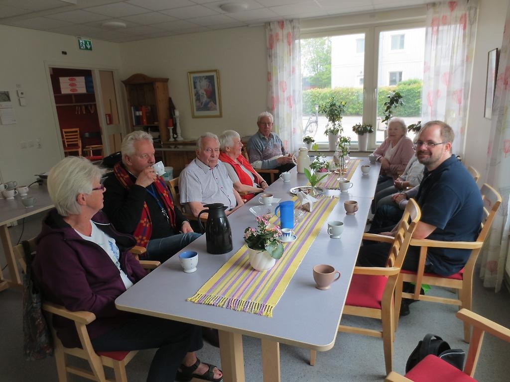 Det var ett mycket glatt gäng som bjöds på kaffe och kärleksmums som avslutning. Kenneth Dalbris som arbetar på Träffpunkten har också deltagit i cirkeln och berättar att det varit ett härligt gäng. Gruppen har träffats fem gånger och Andreas Tordby från studieförbundet ABF har varit ledaren.