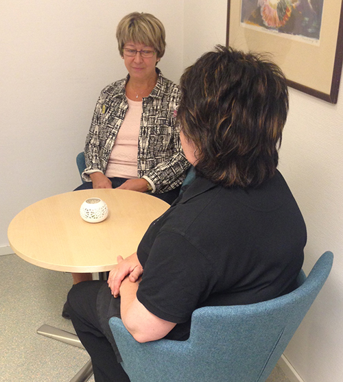 Anhörigstödet erbjuder enskilt stödsamtal. Under samtalet har du möjlighet att tala om hur du har det, hur du mår, svåra saker, roliga saker eller vad som känns viktigt vid mötet.