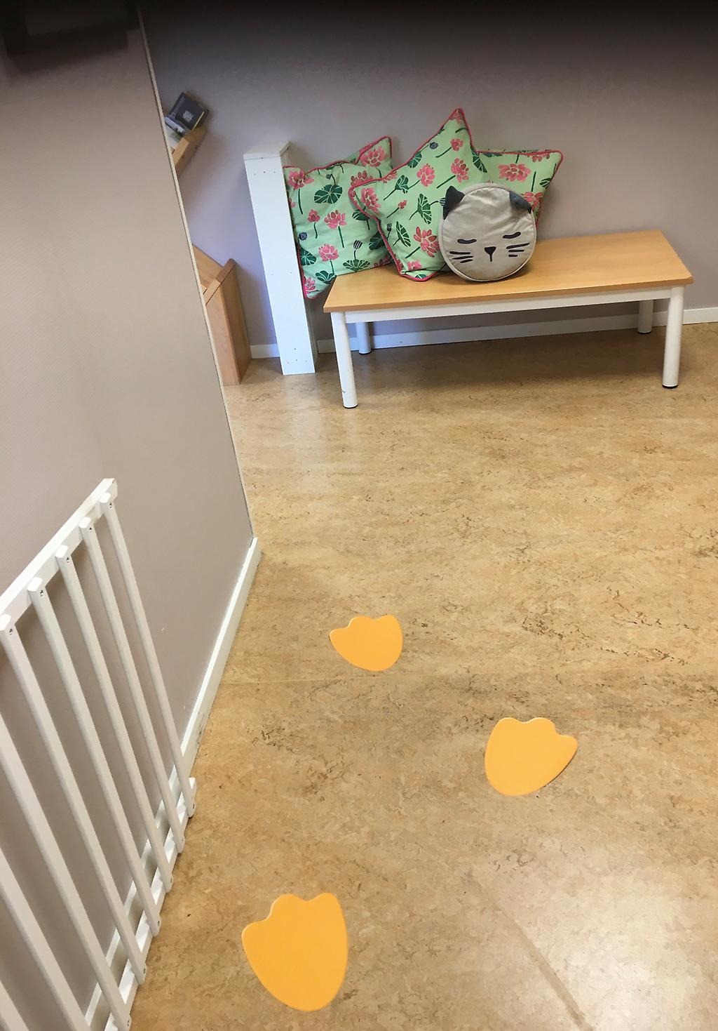 Det ser bestämt ut som ankfotsavtryck i Familjecentralens entré. Men ingen anka så långt ögat når...