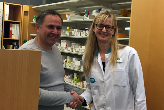 Hassan kom in till apoteket i Götene i höstas för att höra sig för om praktikplats. Hassan kommer från Syrien och är apotekare med lång erfarenhet. Han är utbildad i Sankt Petersburg i Ryssland. Som brukligt i Syrien får de bästa studenterna chans till gratis universitetsstudier utomlands. Efter sex månaders praktik jobbar nu Hassan halvtid på apoteket och fortsätter studera på halvtid för att få sin apotekarlegitimation i Sverige.