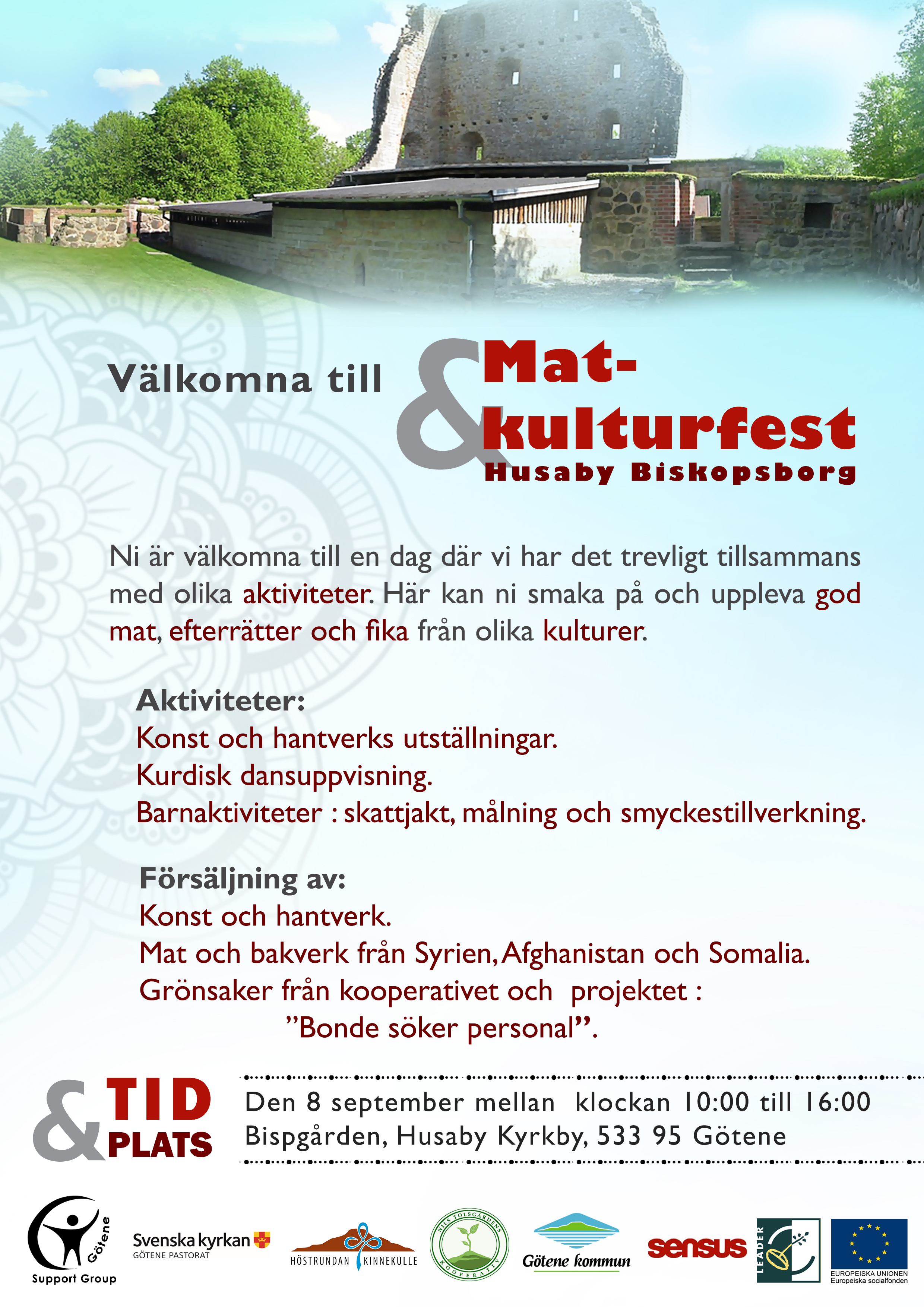 Den 8 september mellan klockan 10.00 och 16.00 är det kulturfest i Biskopsborgen med provsmakning av maträtter från olika länder. Ta chansen att prata med människor som lagat mat, som dansar och ställer ut sin konst. Här finns möjlighet till nya insikter och erfarenheter.