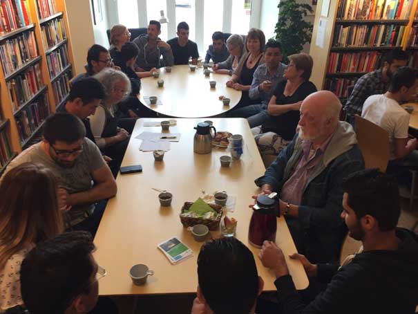 Som integrationsstrateg får jag vara med om många spännande möten och de flesta sker i vardagen i mitt jobb. Den här gången har jag lånat ut pennan till min praktikant Adil som tillsammans med biblioteket höll i det första av sex språkcaféer där nyanlända och etablerade svenskar möts, fikar och pratar svenska.
