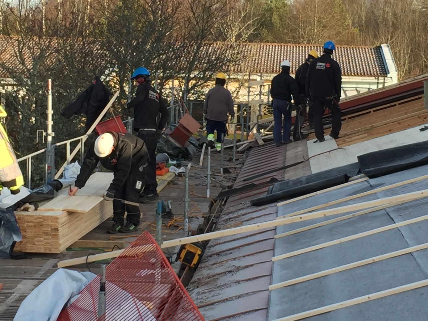 Förstora bildenTakrenoveringen i full gång. Klicka på bilden för att förstora.