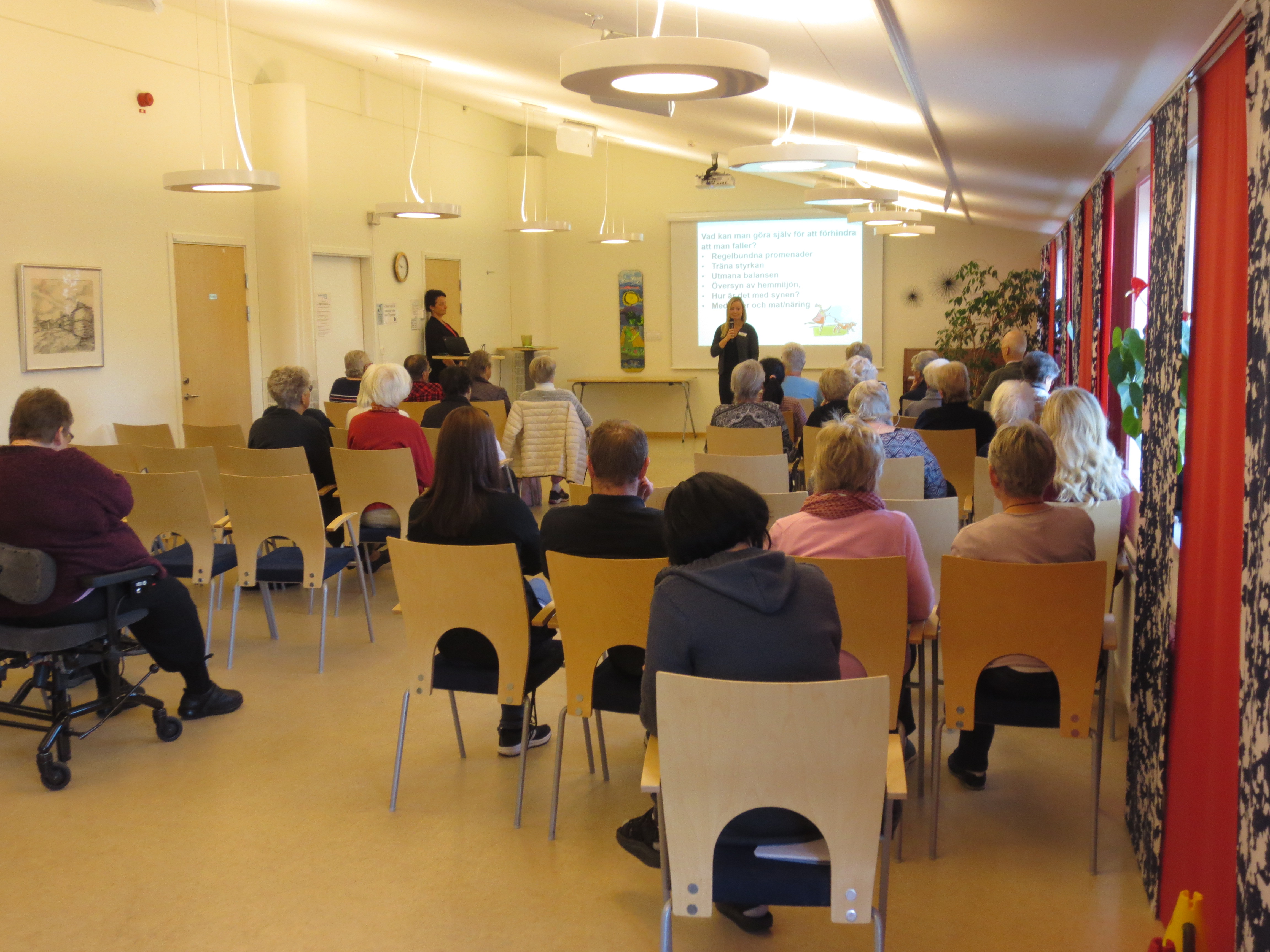 Sjukgymnast Helene Lind från Götene kommun hälsade välkommen och pratade om vikten av att våga utmana sig. Det är aldrig försent att börja träna, promenader och lätta övningar för att öva upp sin balans kan de allra flesta göra.