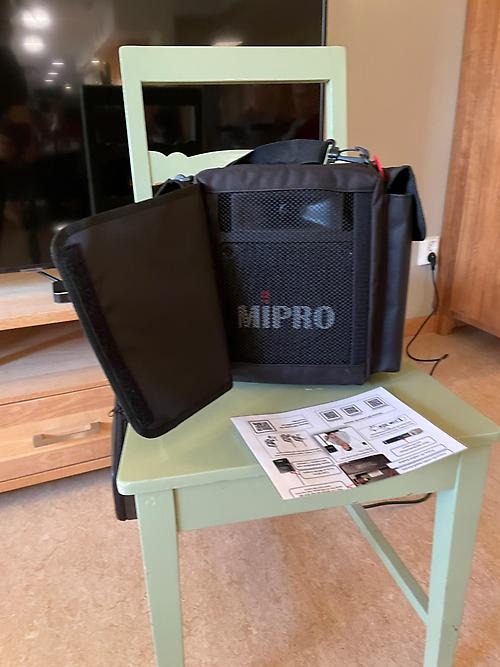 Med stöd av Folkhälsomedel har äldreomsorgen köpt in en mobil förstärkare, liten och smidig att använda både vid inomhus och utomhus aktiviteter.