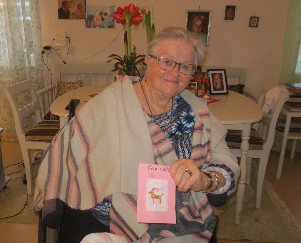 Veckan innan jul kom det fina broderade julkort från elever vid Prästgårdsskolan årskurs 5 till Helenagården.