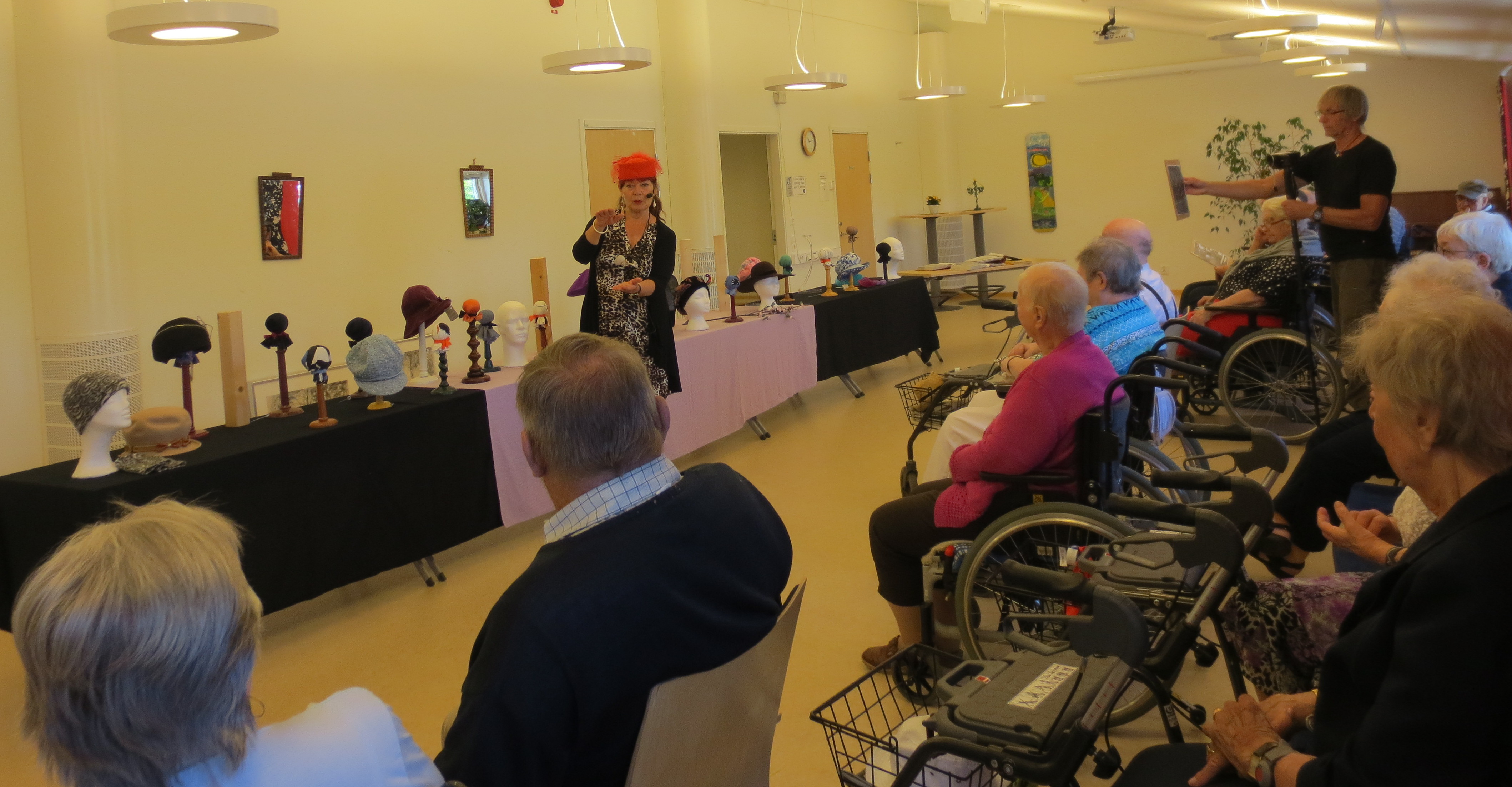 På måndagen gavs en lite annorlunda underhållning på Götene Äldrecenter. Då bjöds det in till ”hattfrossa” på Berget. Det var ”hattmakare” Kerstin Persson-Bertheaud som stod för programmet