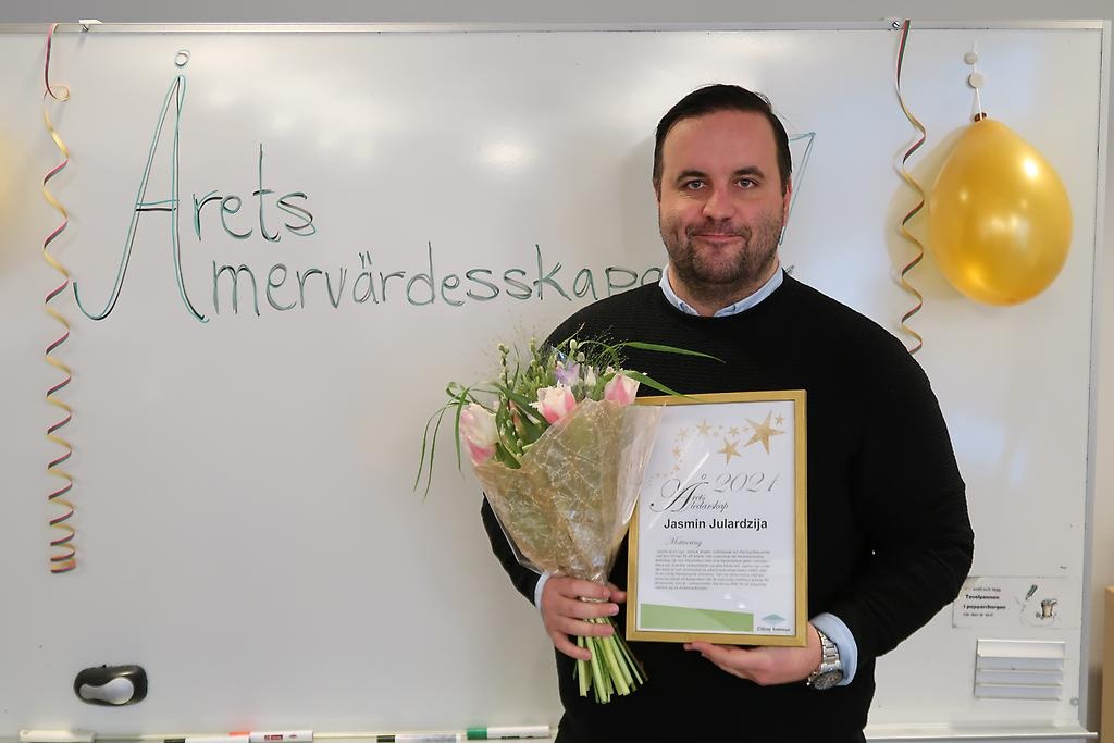 Det var i fredags som kommundirektören och kommunalrådet överraskade Jasmin när han tillsammans med de andra utvalda för utmärkelse blev lurad till ett påhittat möte. Jasmin trodde att han skulle på ett möte om utveckling av arbetsmarknadsenheten. När han gick in genom dörren fick han sedan en oväntad överraskning.