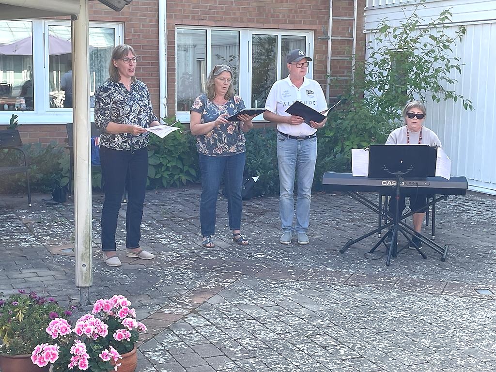Under torsdagen den 9 september bjöds boende på Korttiden och Helenagården på finstämd sång och musik av Götene pastorats musiker.