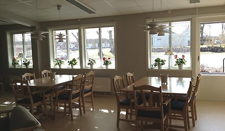 På boendet finns rymliga gemensamhetslokaler såsom kök, matsal och allrum. All mat lagas på boendet.