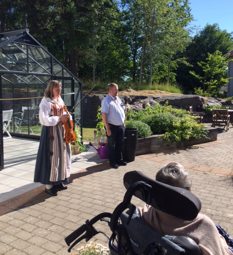 Växthuset är 16 kvadratmeter och rymmer också lite trädgårdsmöbler. Rotary skänkte även växter som planterades samma dag. - Förutom odling kan de boende fika och äta lunch om de vill i växthuset, säger Maria Elmlund enhetschef på Ceciliagården