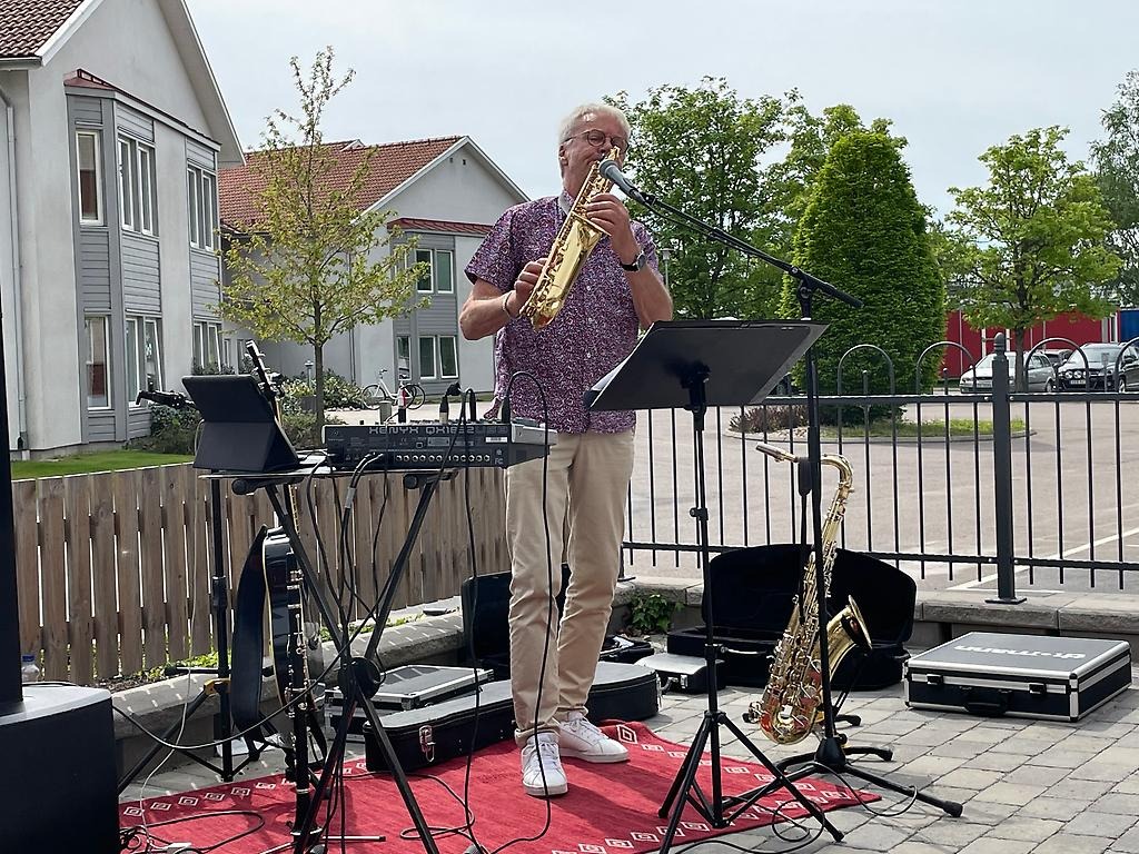Under solig himmel spreds musikglädjen runt äldrecenter, även förbipasserande på promenad och cykel hade möjligheten att stanna upp och lyssna. Underhållningen var just det, underhållande och Kenneth bjöd både på musik och sig själv på ett enkelt och naturligt sätt.
