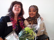 Förstora bildenAnita Blom från ABF Götene och Ikram Isman Duale som har nyttjat Västerbys kvinnobad.