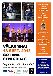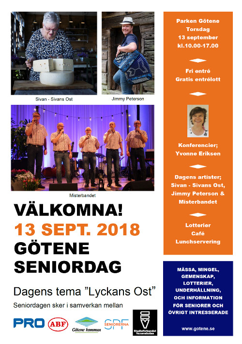 Välkommen till årets Seniordag med ett fullspäckat program med underhållning, mässa, mingel, gemenskap och lotterier. Dagens artister är: Sivan- Sivans Ost, Jimmy Petersson & Misterbandet