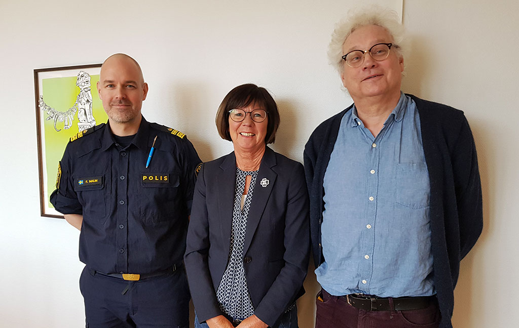 Förstora bildenFredrik Malm, Polisen, Susanne Andersson, kommunstyrelsens ordförande och Dag Högrell, risk- och säkerhetssamordnare. Klicka på bilden för att förstora.