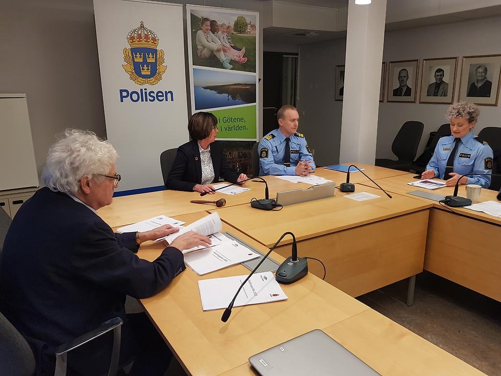 Säkerhetssamordnare Dag Högrell, kommunalråd Susanne Andersson, lokalpolisområdeschef Johan Rexhag och kommunpolis Elisabeth Oliv.