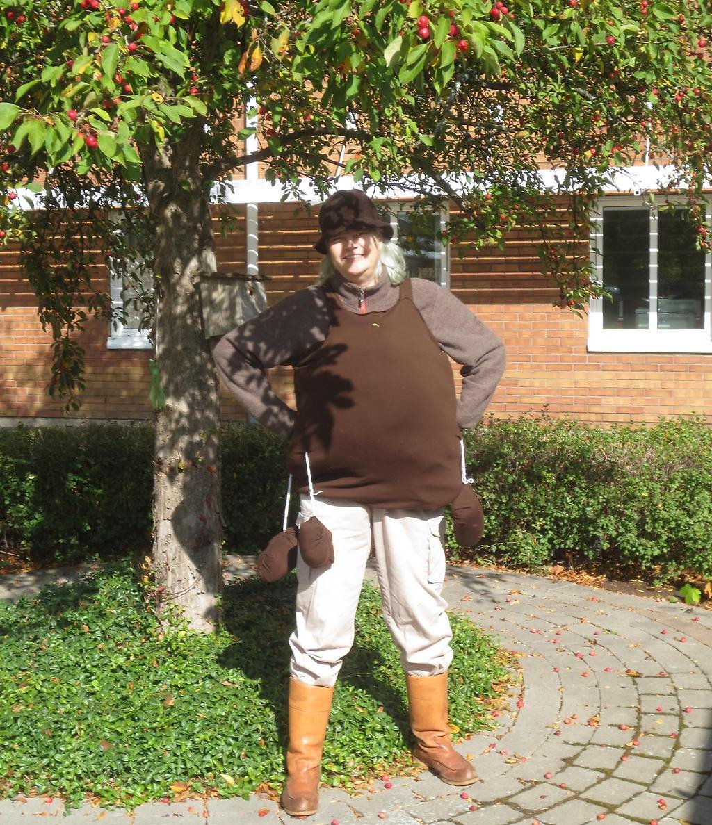 Yvonne gjorde entré i en rolig egentillverkad kostym som potatis, brun, rund och med groddar å småpotatis hängande runt kroppen.
