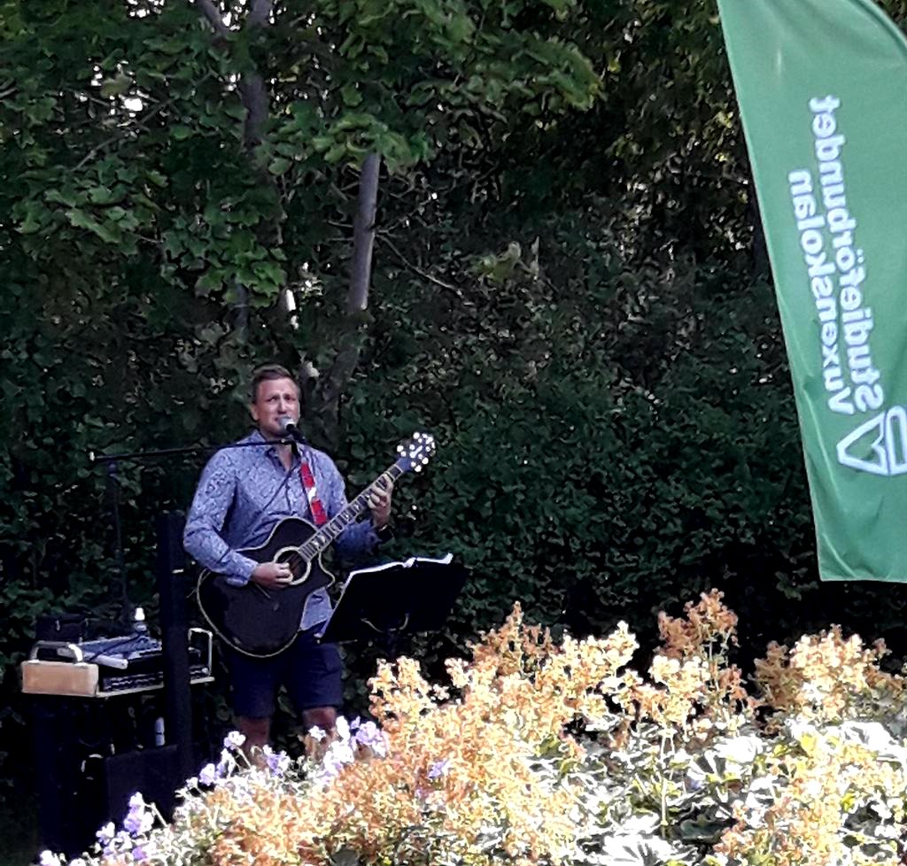 Måndagen den 24 augusti gästades Götene äldrecenter av Henrik Strömberg känd från Scotts orkester. Henrik bjöd på skön sång och härligt gitarrspel i ett blandat program av kända låtar.