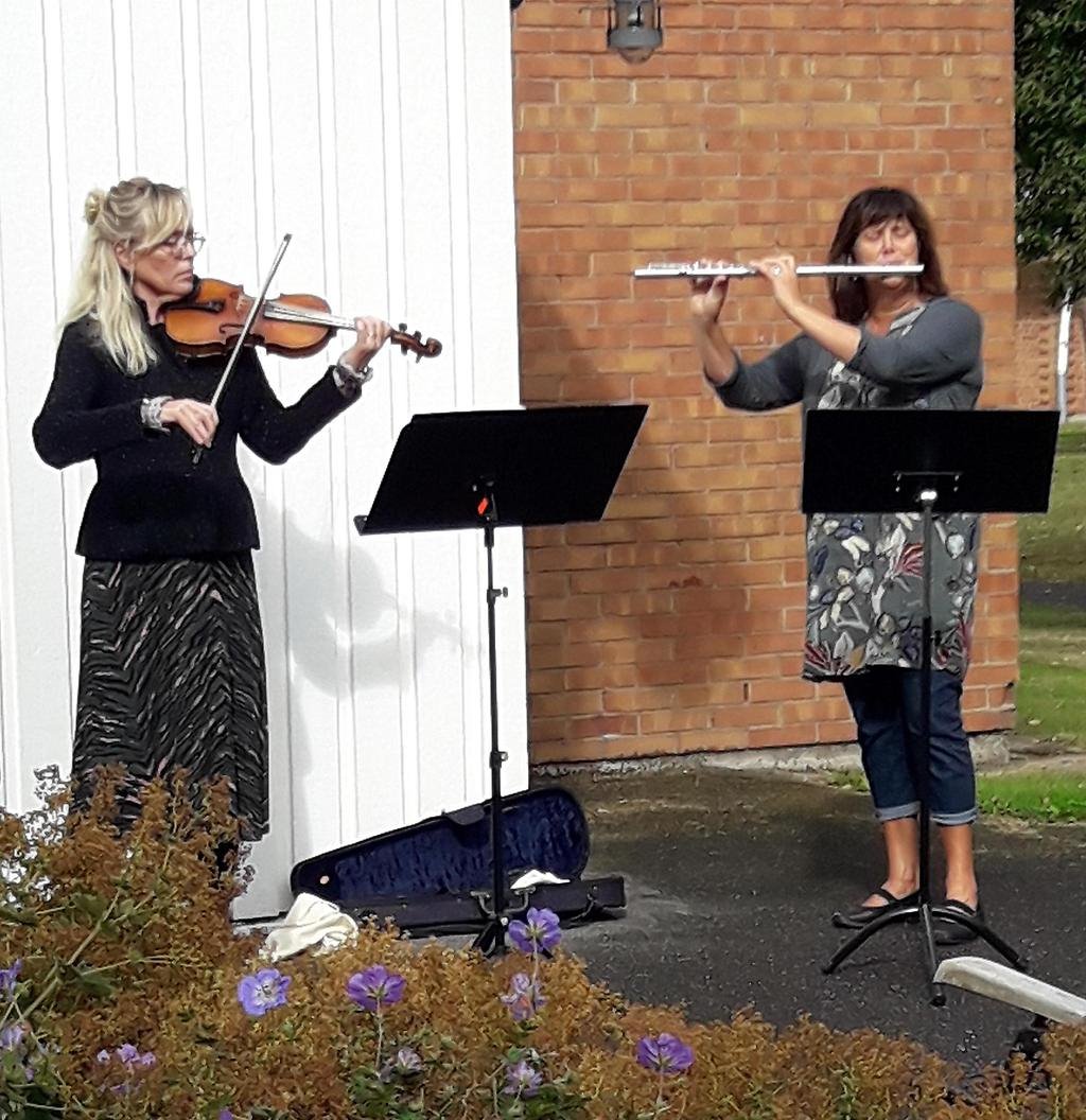 Lena Öberg och Ulla Stern pedagoger vid Götene kulturskola underhöll vid Helenagården den 3 september. De bjöd ett fint program av folkvisor och klassisk musik på piano, fiol och tvärflöjt.