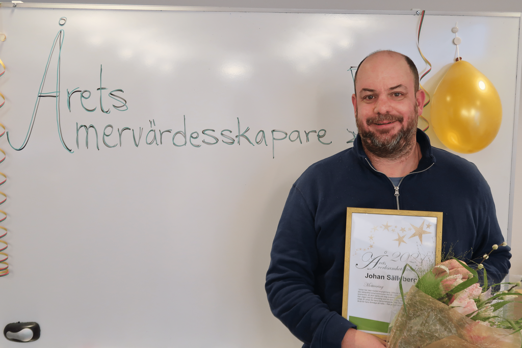 Vi har glädjen att meddela att projektledare Johan Sälleberg har fått utmärkelsen Årets verksamhetsutvecklare 2021. Hans arbetskamrater vill ge honom en stor eloge för hans hänsynstagande inför den oro resan mot utveckling kan skapa likväl för hans förmåga att hålla !