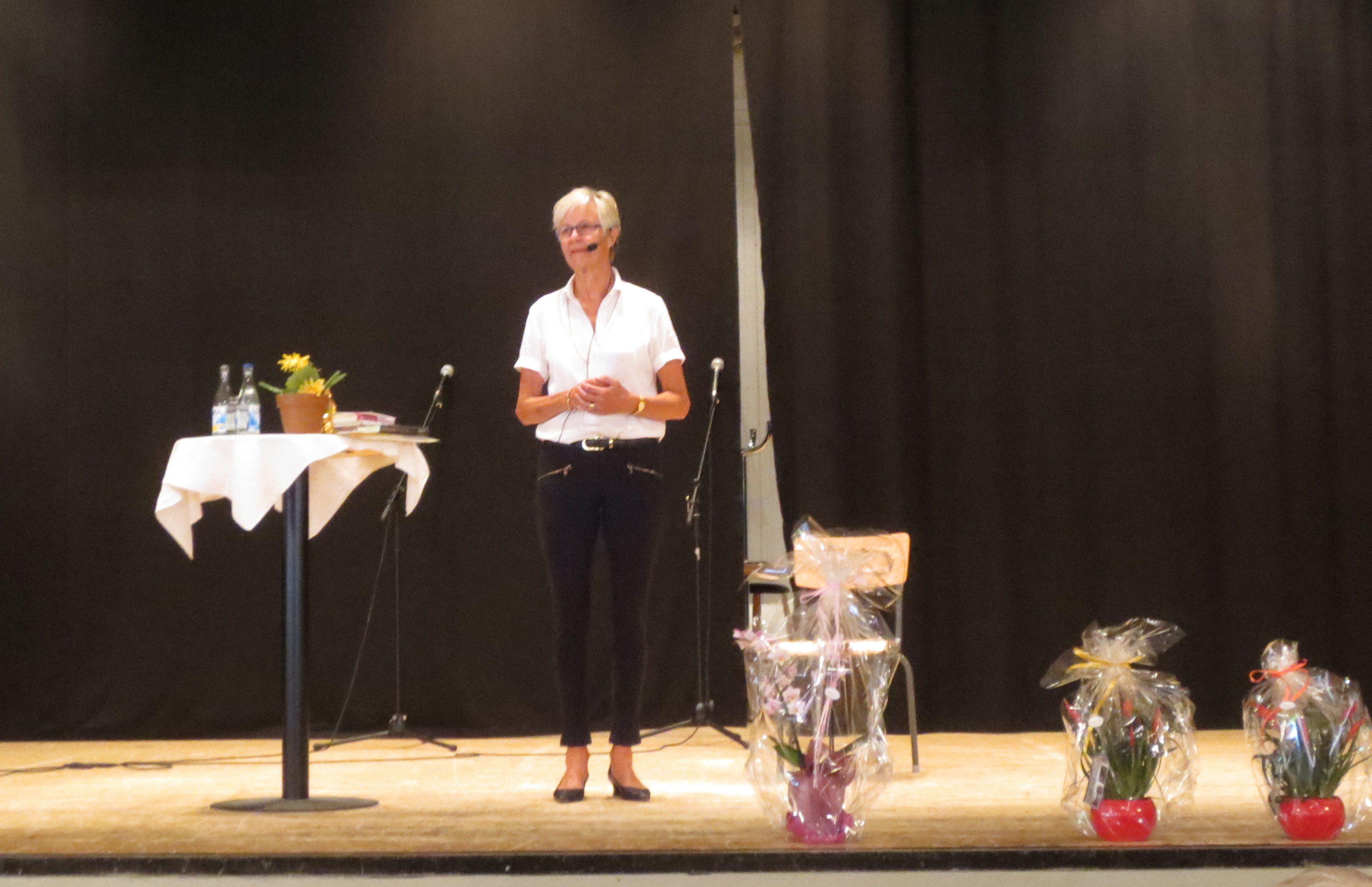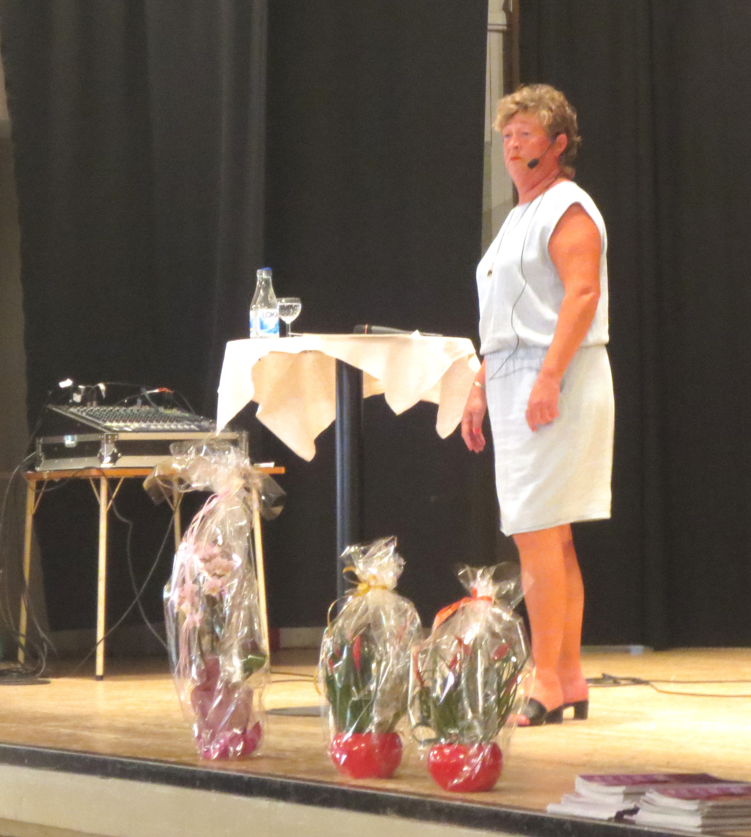 Programmets första föreläsare var Ewa Olsson programledare från Radio Skaraborg som svarade på frågor från publiken och talade kring dagens ämne med humor.