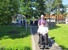 Ett flertal volontärer från Väntjänst gruppen hjälpte till. Väntjänst, personal och familj hjälptes åt, de sällskapade och var rullstolschaufförer så att alla som önskade kunde komma till lusthuset samt få en härlig promenad i trädgården.