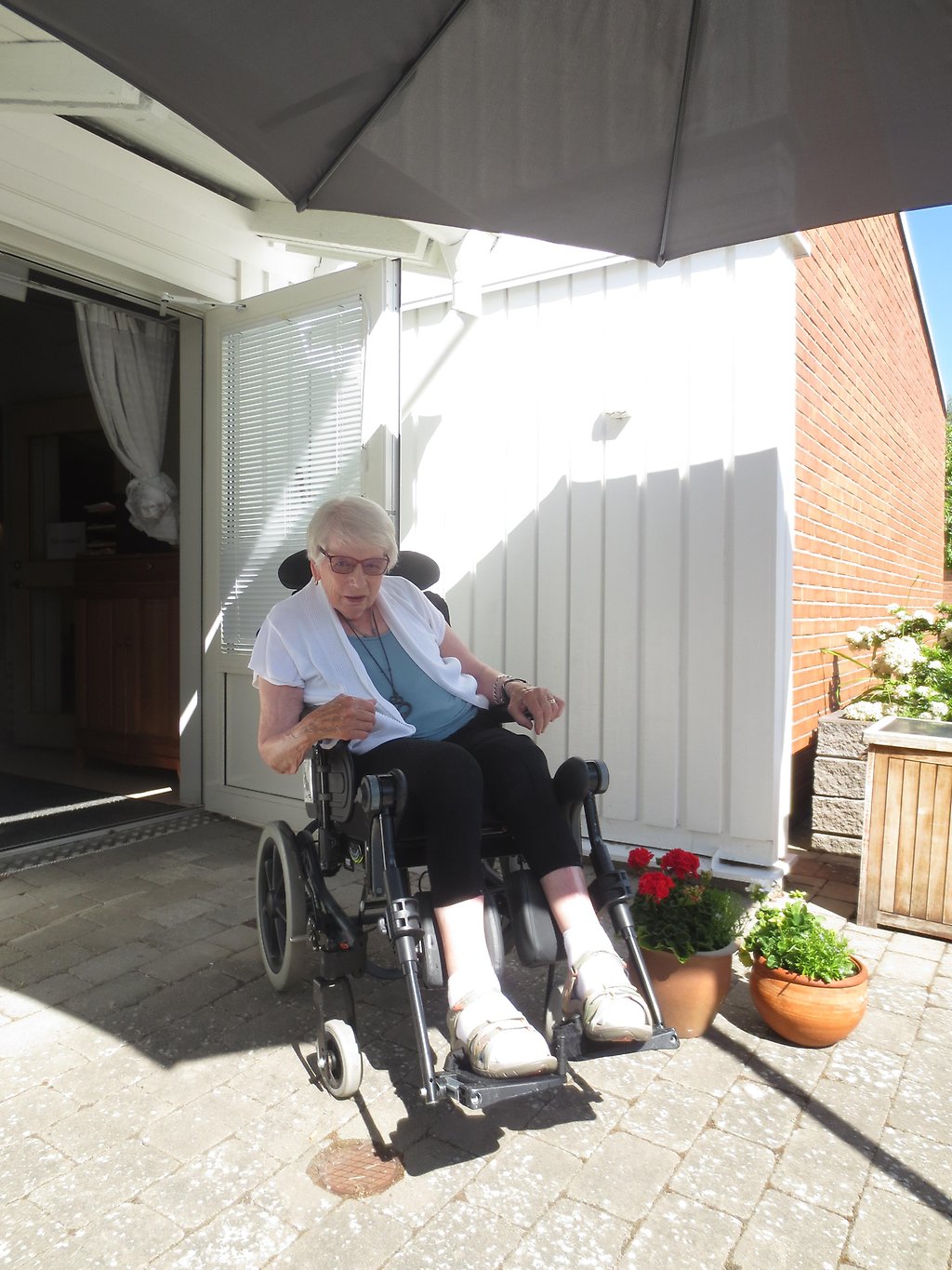 Vi på Helenagården och Korttiden är så glada och tacksamma för de nya parasoller vi fått till sommaren med stöd från Kinne-Vedums rödakorskrets.