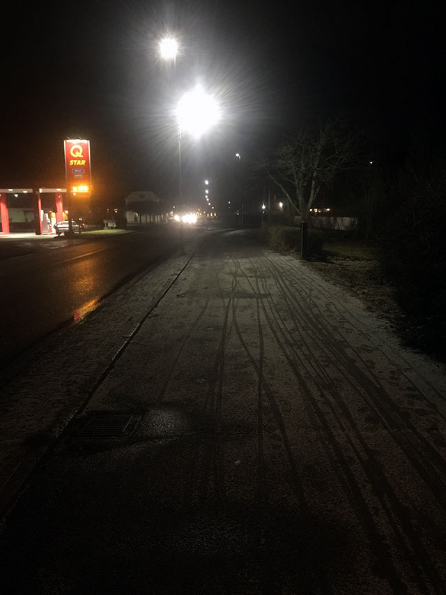 Den 31 januari i år genomfördes en sådan trygghetsvandring i Götene. Vi håller på att bearbeta materialet och ta fram förslag till åtgärder. Det vi då såg var bland annat att på Lidköpingsvägen mellan Sil och centrum är cykelbanan och trottoaren väldigt mörk.