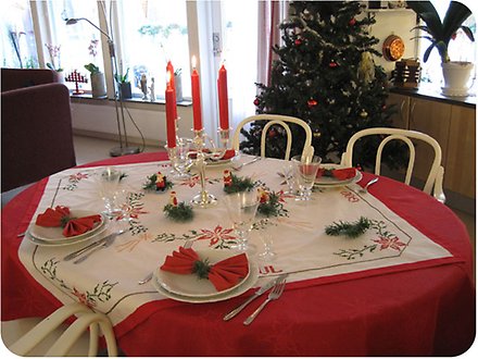 Boende och personal på äldreboende samt personal och besökare på dagverksamhet har tillsammans skickat in bidrag på sina vackert dukade bord.