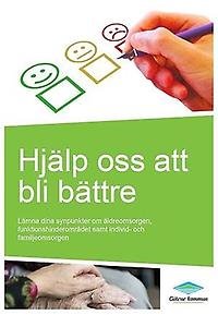 På Medborgarkontoret och ute hos samtliga enheter kan du få utskrivet vår synpunktsfolder "Hjälp oss att bli bättre". Foldern lämnar du sedan in på Medborgarkontoret alternativt postar som brev till adress: