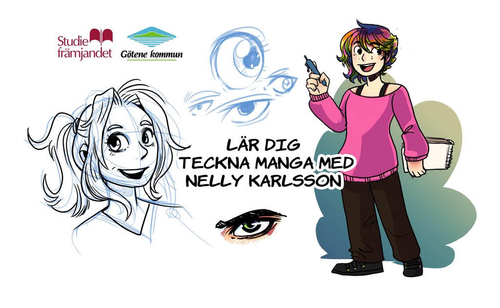Lär dig teckna manga hemifrån! Vi ses på Discord och lär oss grunderna i mangateckning och serier. Sportlovsaktivitet för dig i Götene kommun!