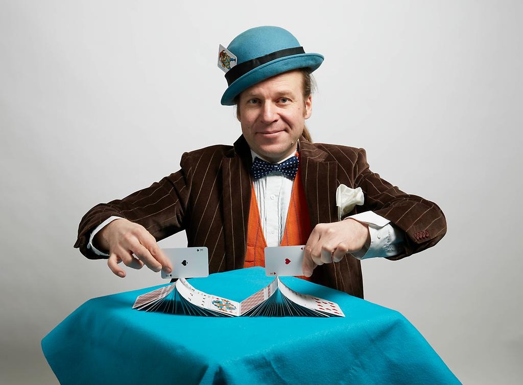 Trollkarlen Joakim Keskinen lär dig konster med bland annat kortlekar, gummiband, snören, kapsyler och andra saker som du hittar hemma.