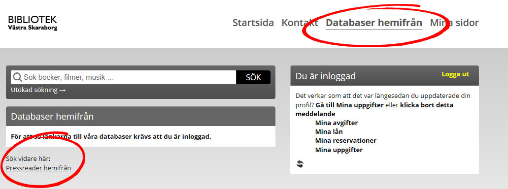 Förstora bildenHur man hittar till Pressreader hemifrån. Klicka på bilden för att förstora.