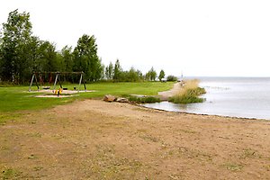 Badplatsen har en sandstrand åt nordväst och en stor öppen gräsyta. Här finns också möjlighet för hundar att bada.