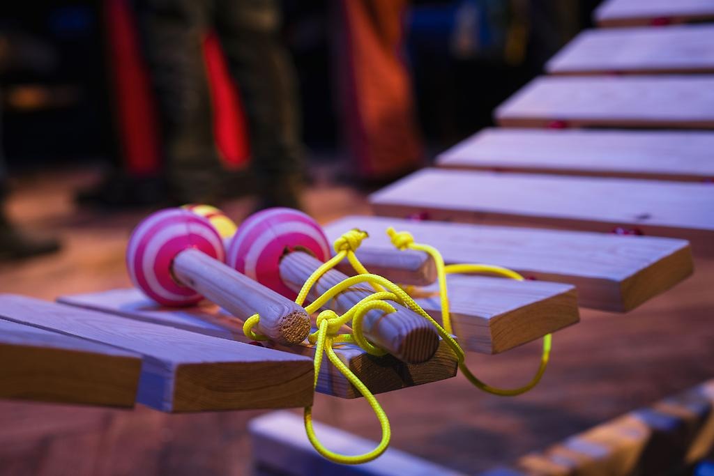 Besökarna får spela, leka och röra på sig på den här lekplatsen där musik, slöjd, rörelse, lek, innovation, teknik och matematik är inbyggt i de unika musiklekinstrumenten.