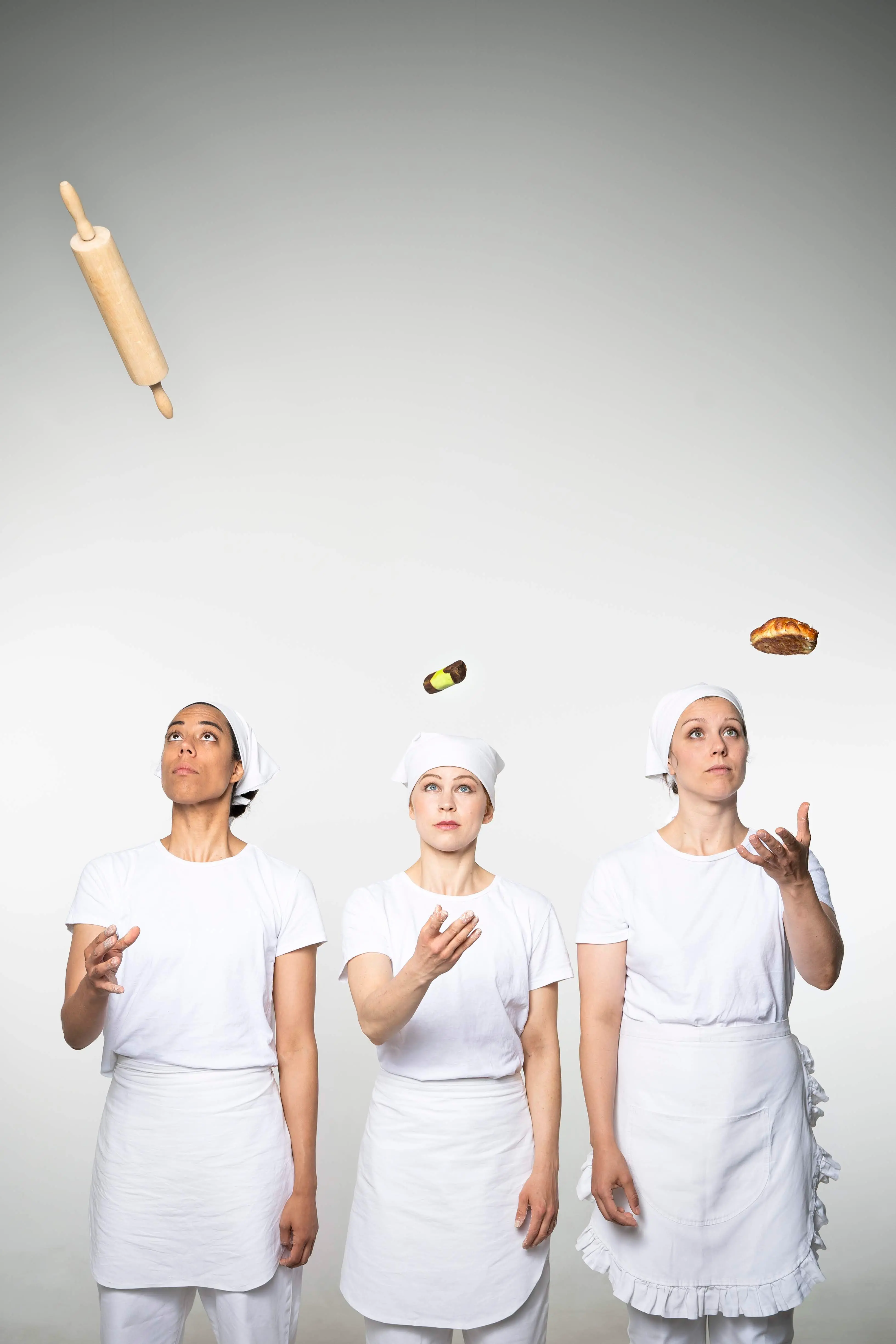 Tre sockerbagare skapar bakverk med kavlar, dans och deg. De dansar fram små Karlsbaderbullar och snurrar fram en lyckad jäsning. I denna humoristiska föreställning möts dikt och dans bland prinsesstårtor och sockertoppar. I en efterföljande dansverkstad får barnen själva prova på att jäsa, vispa och vara deg.