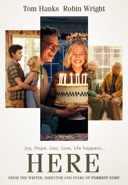 Regisserad av Robert Zemeckis, manus av Eric Roth & Zemeckis och berättad i stil med den hyllade grafiska romanen av Richard McGuire som den är baserad på, spelar Tom Hanks och Robin Wright huvudrollerna i en berättelse om kärlek, saknad, skratt och livet.