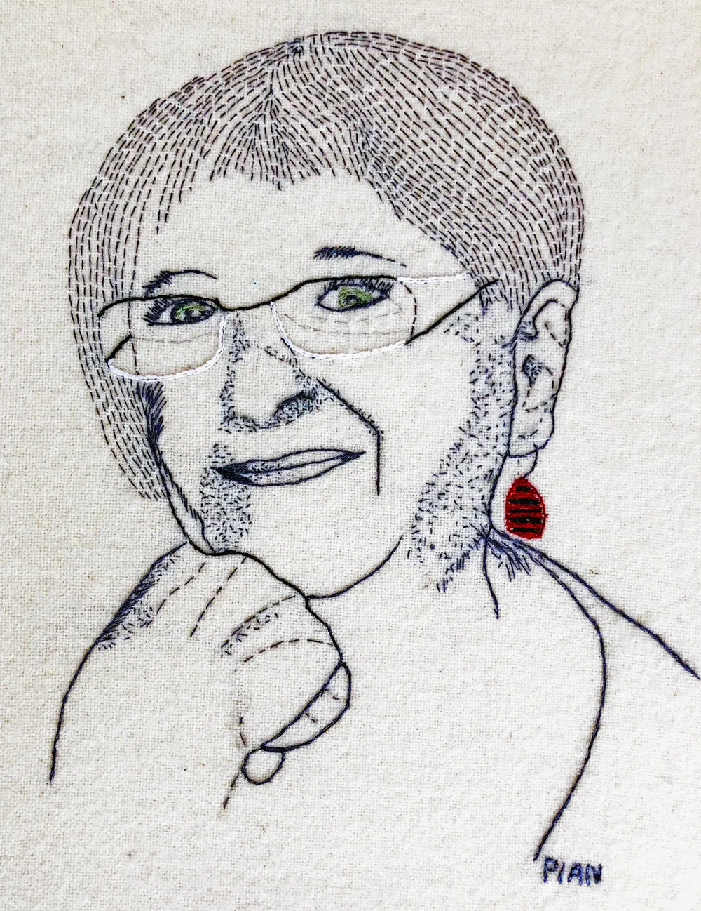 Pian är konstutbildad på Opus School Of Textile Arts i London med inriktning broderi. Idag leder hon tre broderigrupper i Lidköping, Skara och på Kinnekulle där flera gemensamma projekt genomförs, t.ex. St Helena - en stor triptyk som idag finns i Götene kyrka och en karta över Skaraborg med alla dess 15 kommuner.