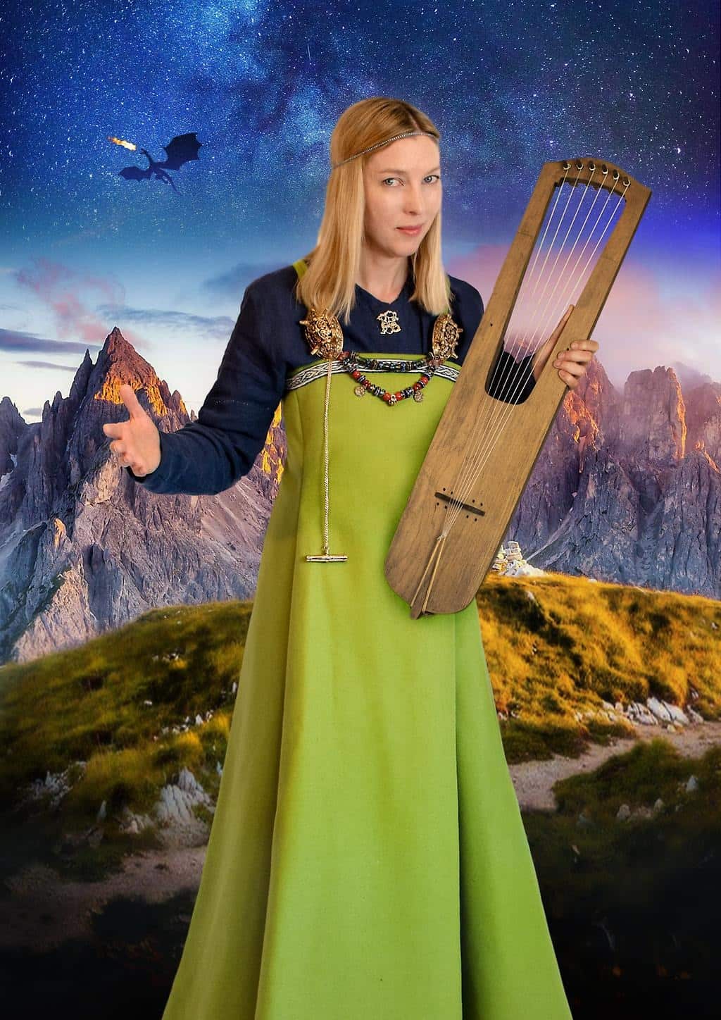 Vikingatida sagor, kvinnliga krigare och draklegender vävs samman till en spännande familjeföreställning med rikspelmannen Anna Rynefors.