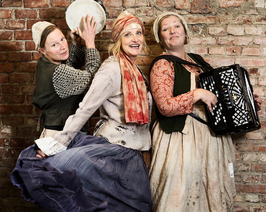 Med skådespelerskan Lisbeth Johansson och musikerna Anna Gustavsson och Carita Jonsson på dragspel, slagverk och diverse instrument.
