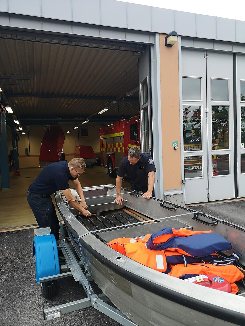 Räddningstjänsten assisterade med båt och flytvästar. Klicka på bilden för att förstora.