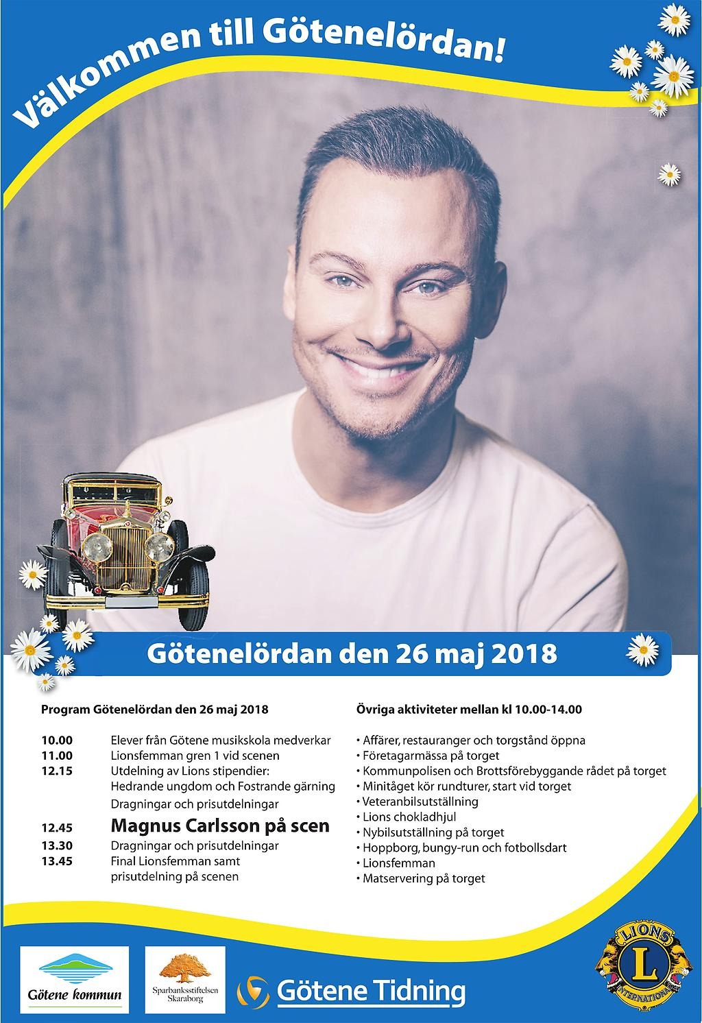 Lions Götene arrangerar Götenelörda'n den 26 maj klockan 10.00-14.00 på stora torget i Götene. Under dagen är det musikunderhållning av Magnus Carlsson och andra roliga aktiviteter för hela familjen!