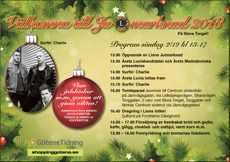 Välkommen till Julmarknaden söndag 2 december, första advent, klockan 13.00-17.00 på Stora Torget. Kom och se tomteparaden, presentation av årets Luciakandidater och Årets medmänniska och mycket mera.