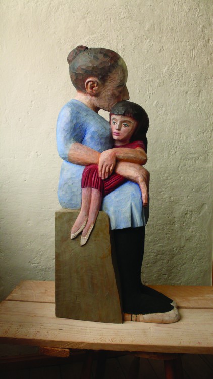 Åsa Holmlunds skulpturer ska ha en råhet i sig säger hon, visa på motståndet i träet. Hon är inspirerad av medeltiden och söker uttrycken hos dess madonnabilder som trots tidens tand, eller kanske med hjälp av den, är fulla med känsla.