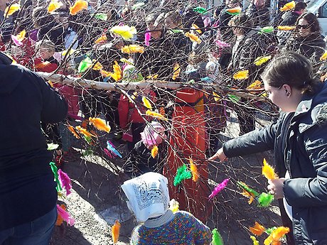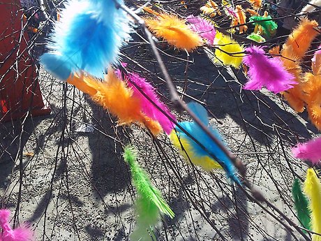 Samling på Solbacken, avgång klockan 14.00 för påskparaden. Tuff tuff-tåget tar med de allra minsta påskkärringarna som inte orkar gå.